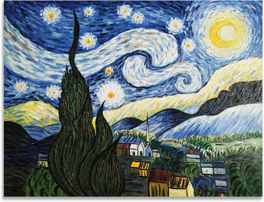 Fokenzary Handgemaltes Ölgemälde auf Leinwand Vincent Van Gogh Sternennacht Reproduktion Wanddekor g