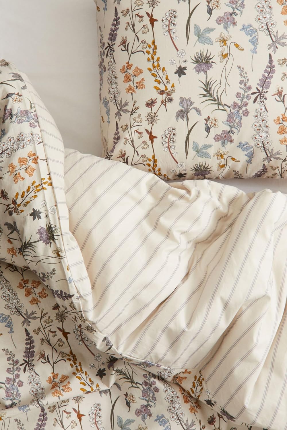 Freyamy Blumen Bettwäsche 135x200cm 2teilig Baumwolle Beige Rosa Bunt Floral Blätter Pflanzen Wende