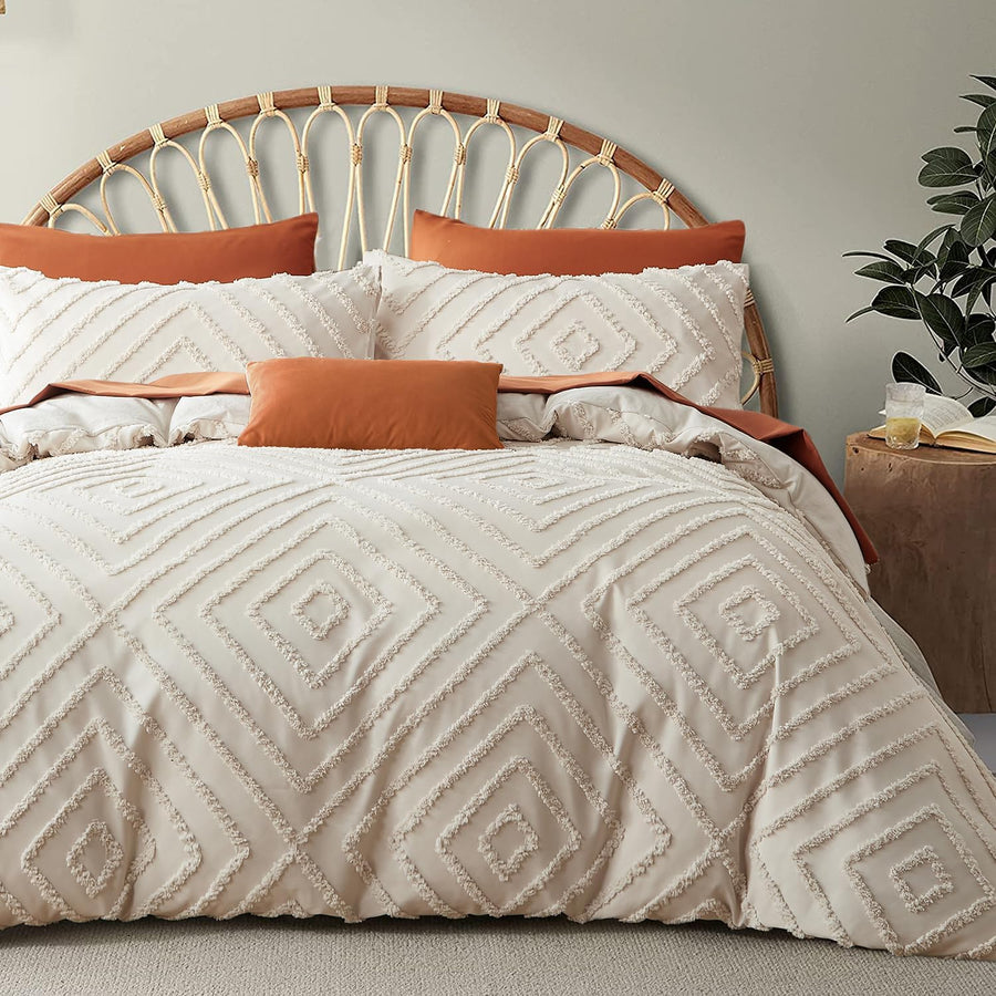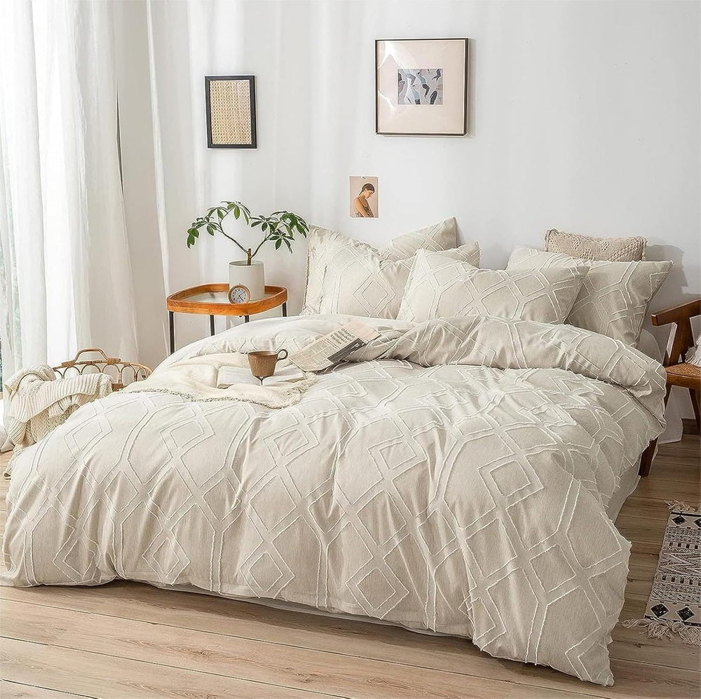 Freyamy BohoBettwäsche 135x200cm Getuftet Geometrische Beige Bettwäsche-Set Stickerei Modern Chic Mi