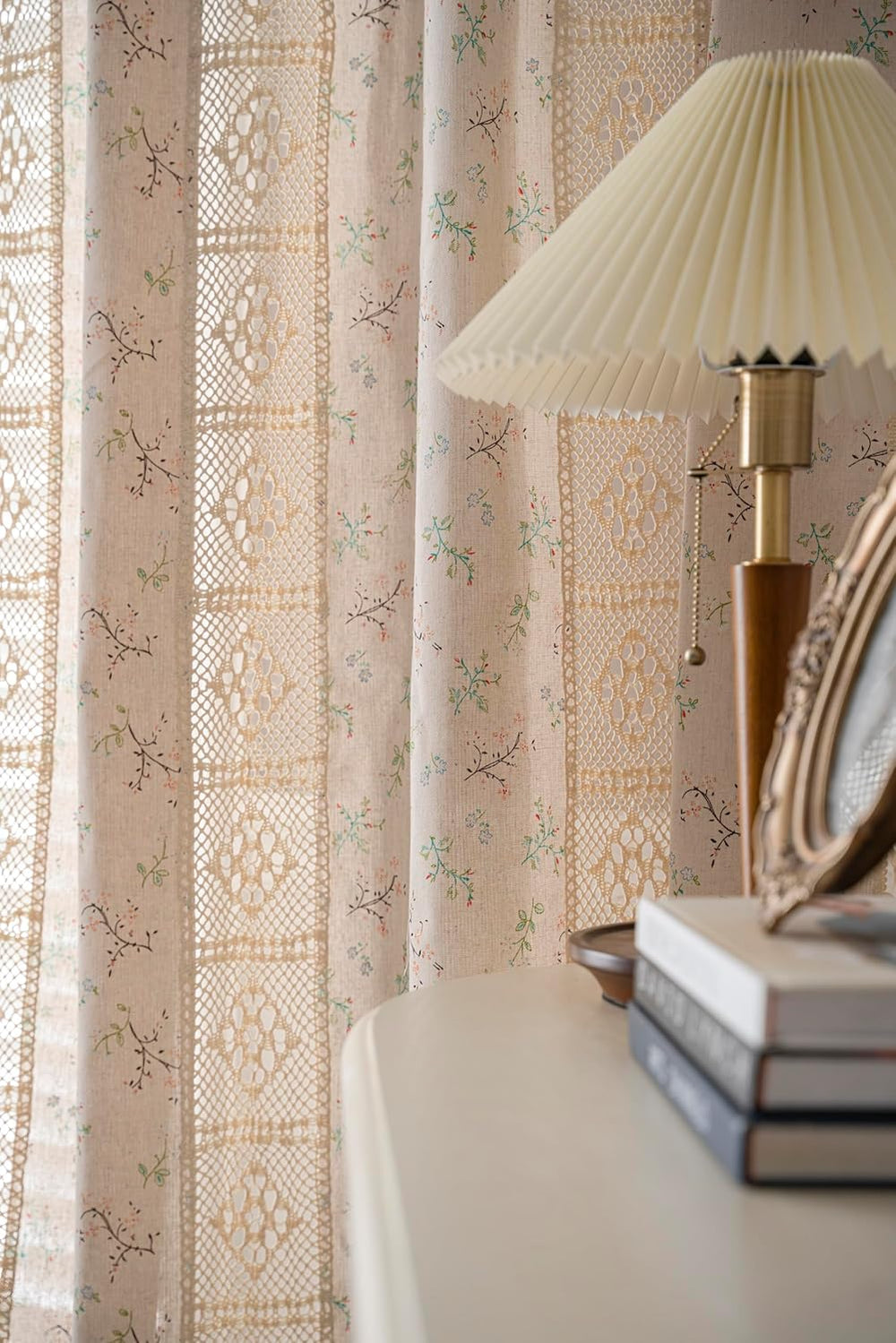 Freyamy Boho Vorhänge Landhausstil Baumwolle Leinen Quaste Gardinen Vintage Aushöhlen Transluzente B