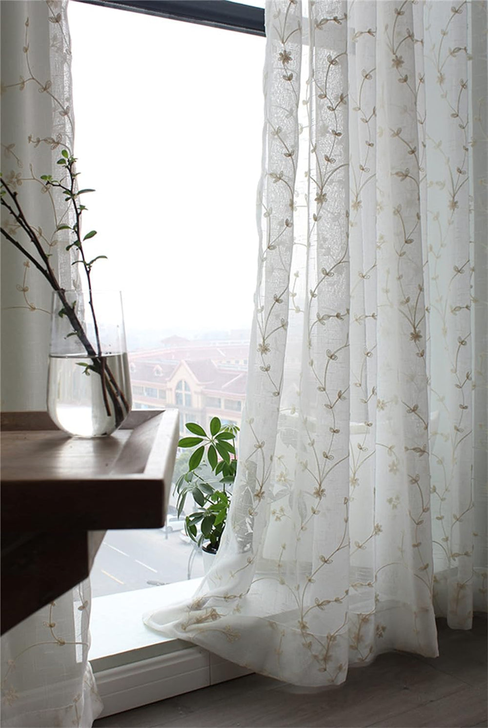 Freyamy 2er Set Gardinen Transparent Blumen Stickerei,Transluzente Vorhang Beige mit Stangendurchzug