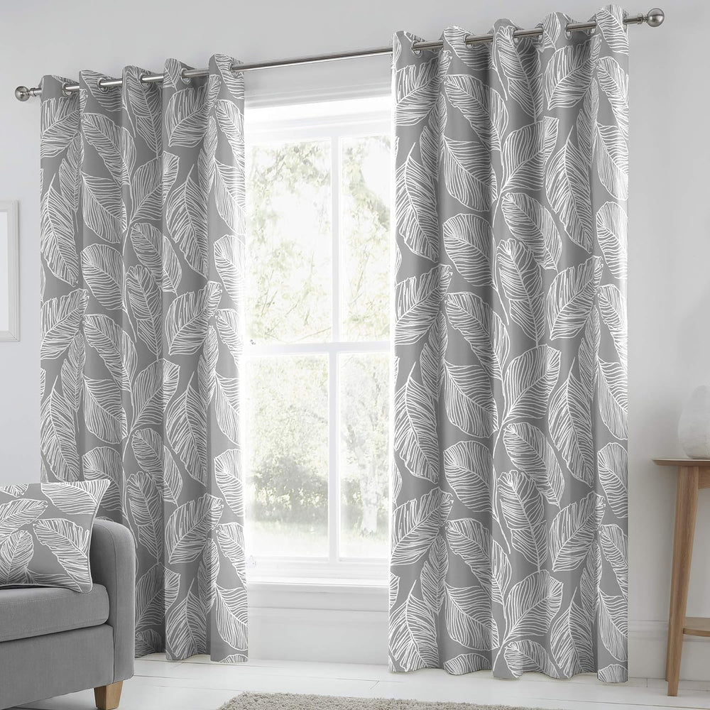 Fusion Lennox Vorhänge mit Ösen, 100% Baumwolle, gefüttert, 117 x 183 cm, Grau 117 x 183cm Grau/Grau