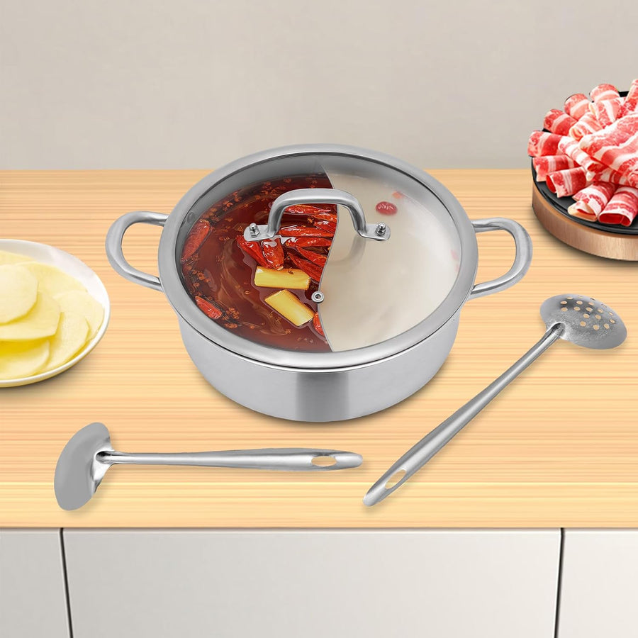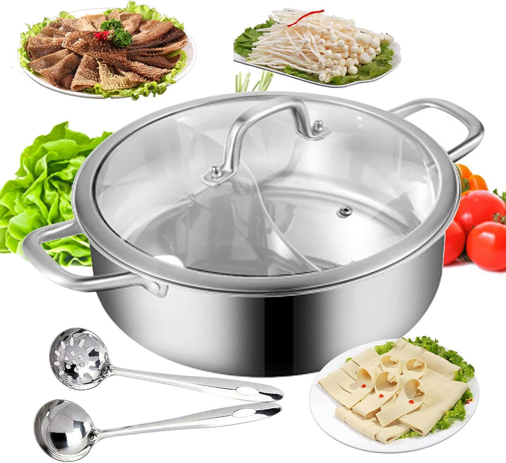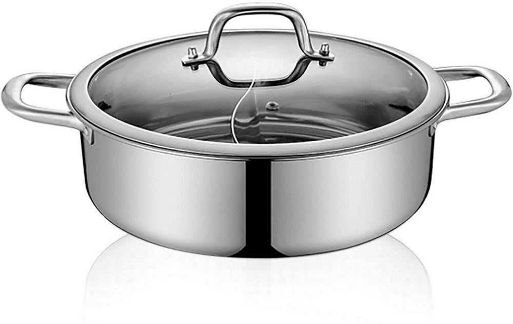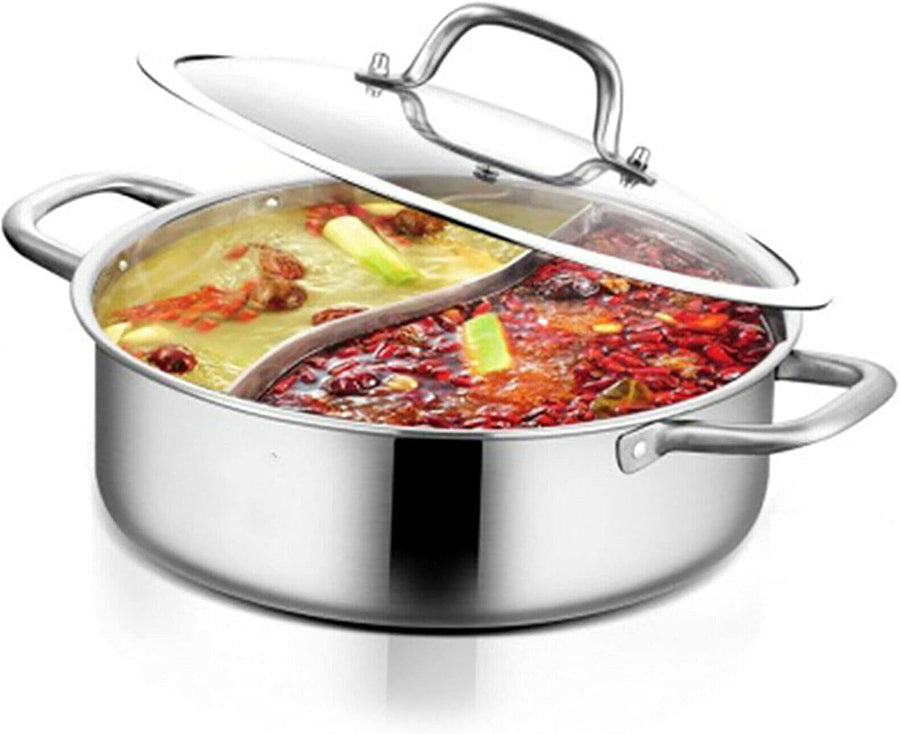 28cm/32cm Shabu Hot Pot Edelstahl Cookware 2 Kammern Mit Glasdeckel Shabu, Dual Sided Für Zwei Versc