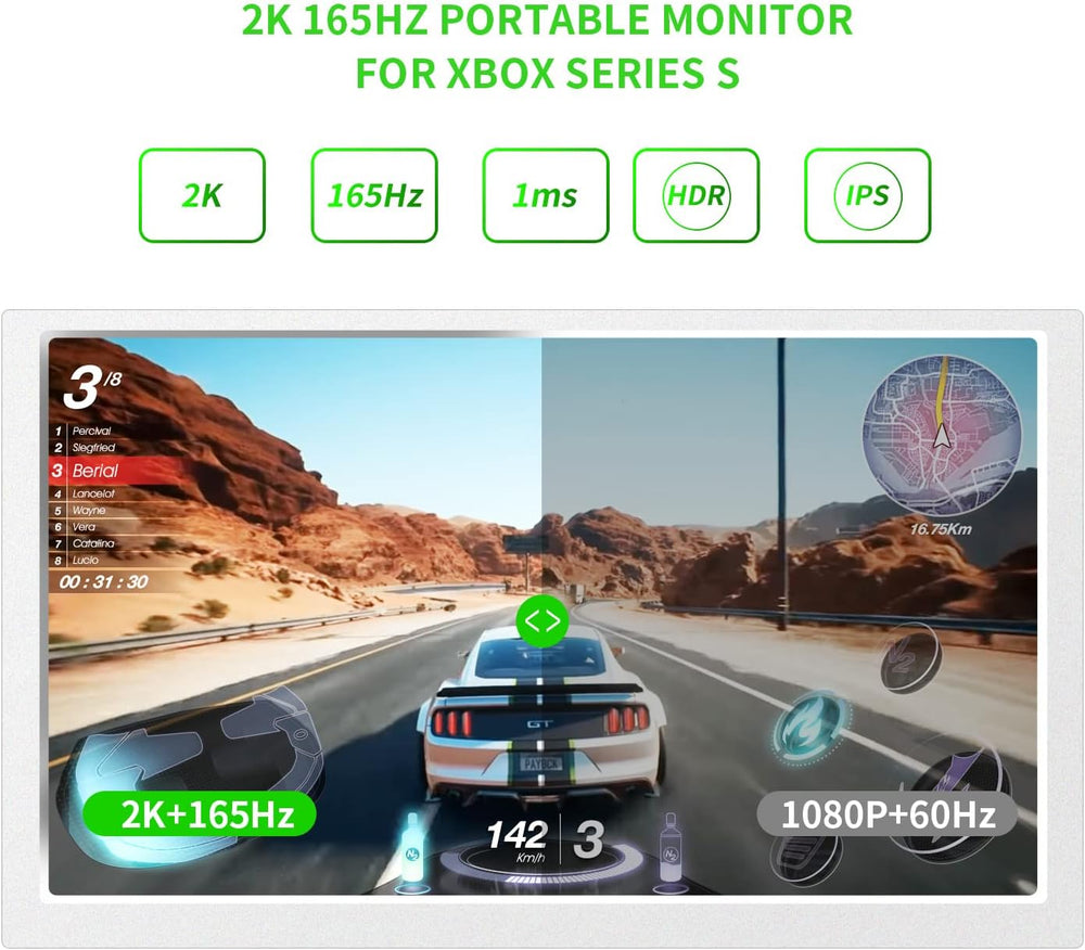 G-STORY 15,6 Zoll Tragbarer Monitor für Xbox Series S, 165-Hz 2K Tragbarer Bildschirm mit Zwei Lauts