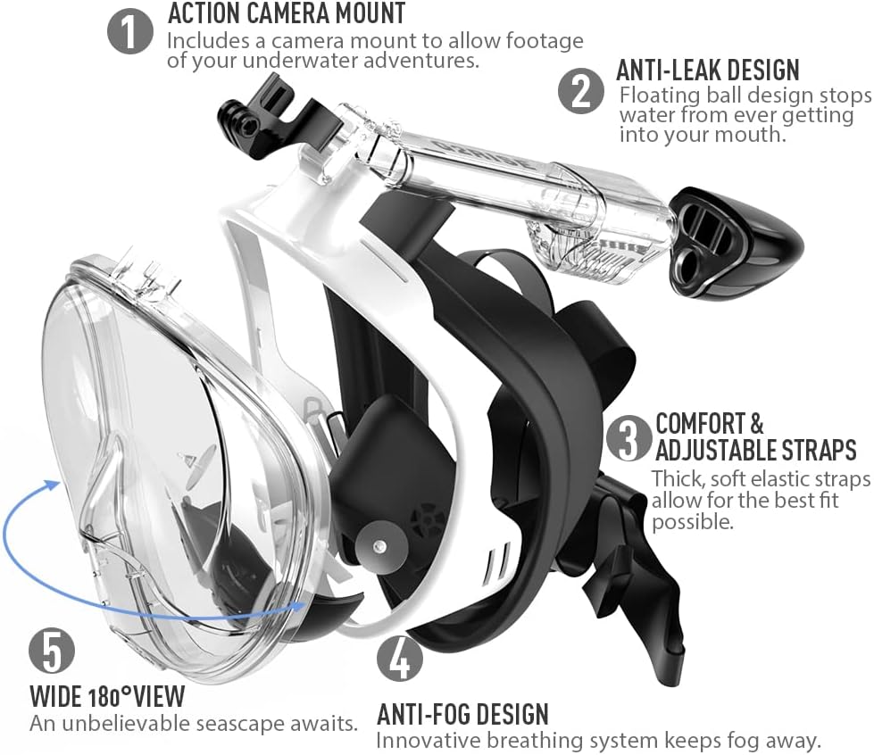 G2RISE® Schnorchelmaske, Tauchmaske, Faltbare CO2-sichere Schnorchel Vollmaske mit Kameraposition fü
