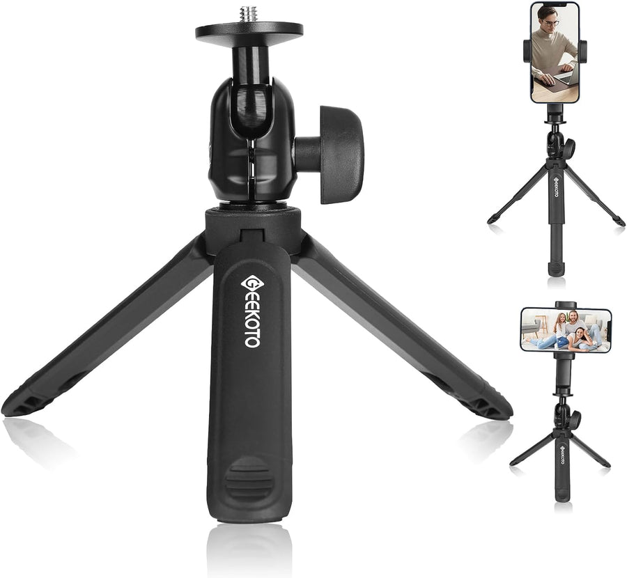 GEEKOTO Handy-Stativ, Aluminiumlegierung, Mini-Reise-Handy-Stativ, einziehbares Kamerastativ für Kom