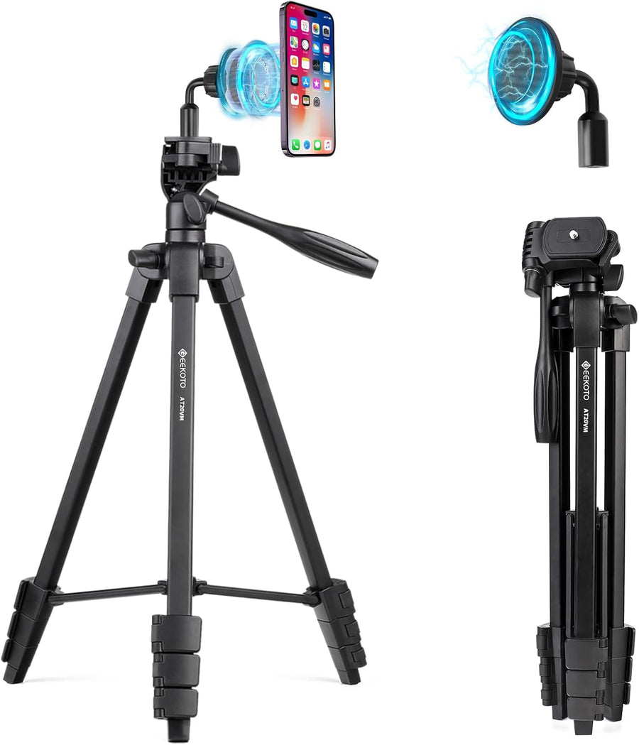 GEEKOTO Magnetische Anziehung Handy Stativ Ausziehbar, 54" Stativ für Smartphone mit 360-Grad-Panora
