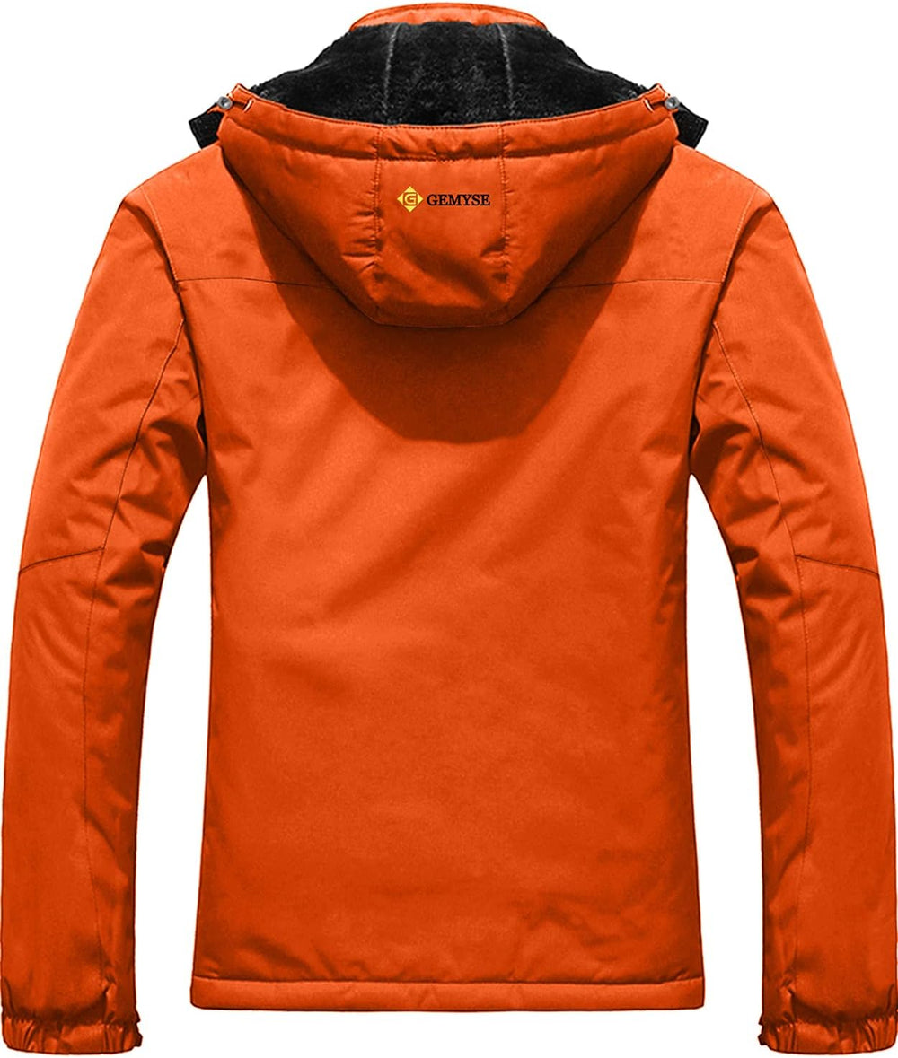GEMYSE Herren Wasserdichte Berg-Skijacke Winddichte Fleece Outdoor-Winterjacke mit Kapuze, M Orange