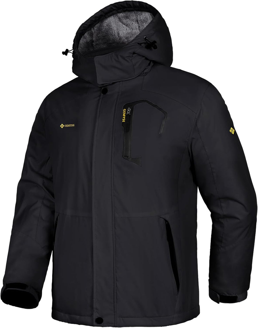GEMYSE Herren Skijacke Outdoor Winter Wasserdicht Winddicht Bergjacke mit Kapuze Fleece XXL Schwarz,