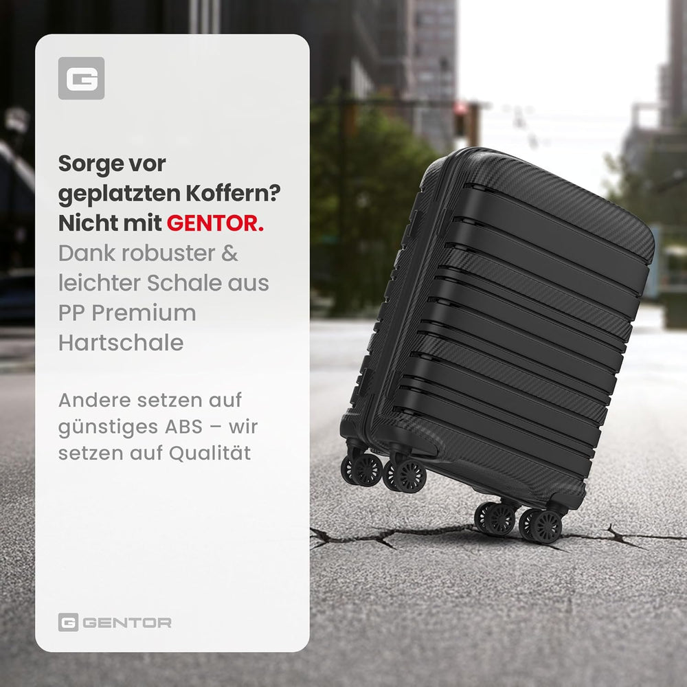 GENTOR Koffer Reisekoffer mit Rollen Carbonoptik Hartschalenkoffer Trolley Handgepäck mit TSA-Schlos