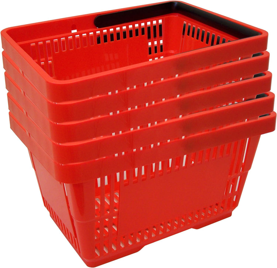 5 Einkaufskörbe aus Kunststoff Plastik mit Henkel 20 Liter 40cm stapelbar rot 5 Stück