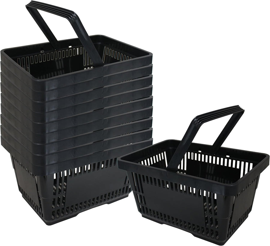 10 Einkaufskörbe aus Kunststoff Plastik mit Henkel 20 Liter 40cm stapelbar schwarz 10 Stück