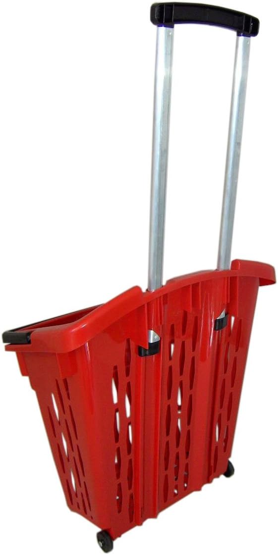 Einkaufstrolley 55 Liter rot mit Rollen ABS-Kunststoff Einkaufskorb fahrbar bunt