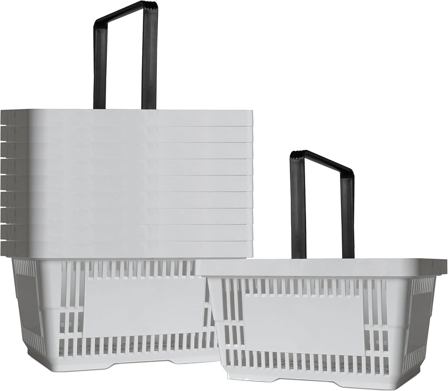 10 Einkaufskörbe aus Kunststoff Plastik mit Henkel 20 Liter 40cm stapelbar weiss 10 Stück Weiss, 10