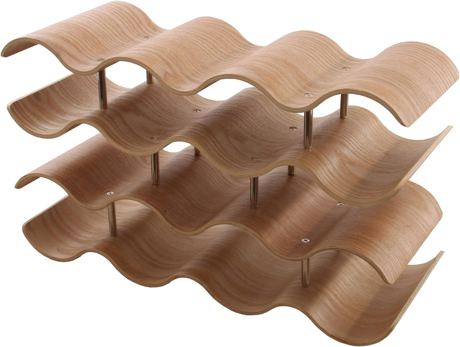 GERSO wellenförmiges Weinregal aus nachhaltigem Holz für 14 Flaschen Wein oder Sekt