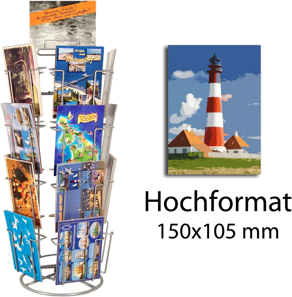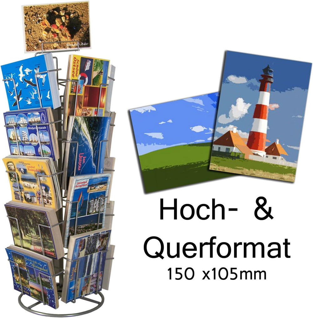 Theken-Kartenständer Postkartenständer für Grusskarten Hochformat 16 Motive drehbar 16 Fächer 130x18