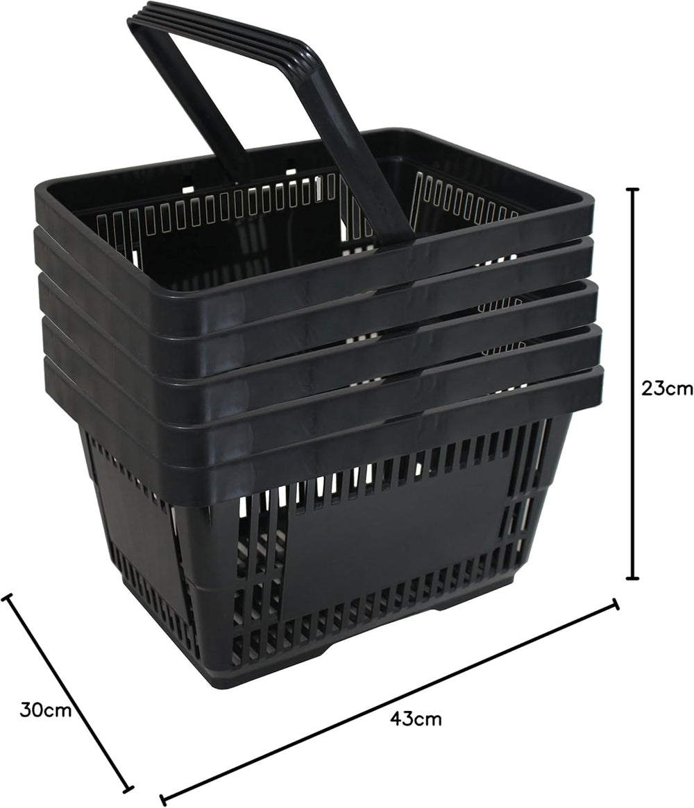 5 Einkaufskörbe aus Kunststoff Plastik mit Henkel 20 Liter 40cm stapelbar schwarz 5 Stück Schwarz
