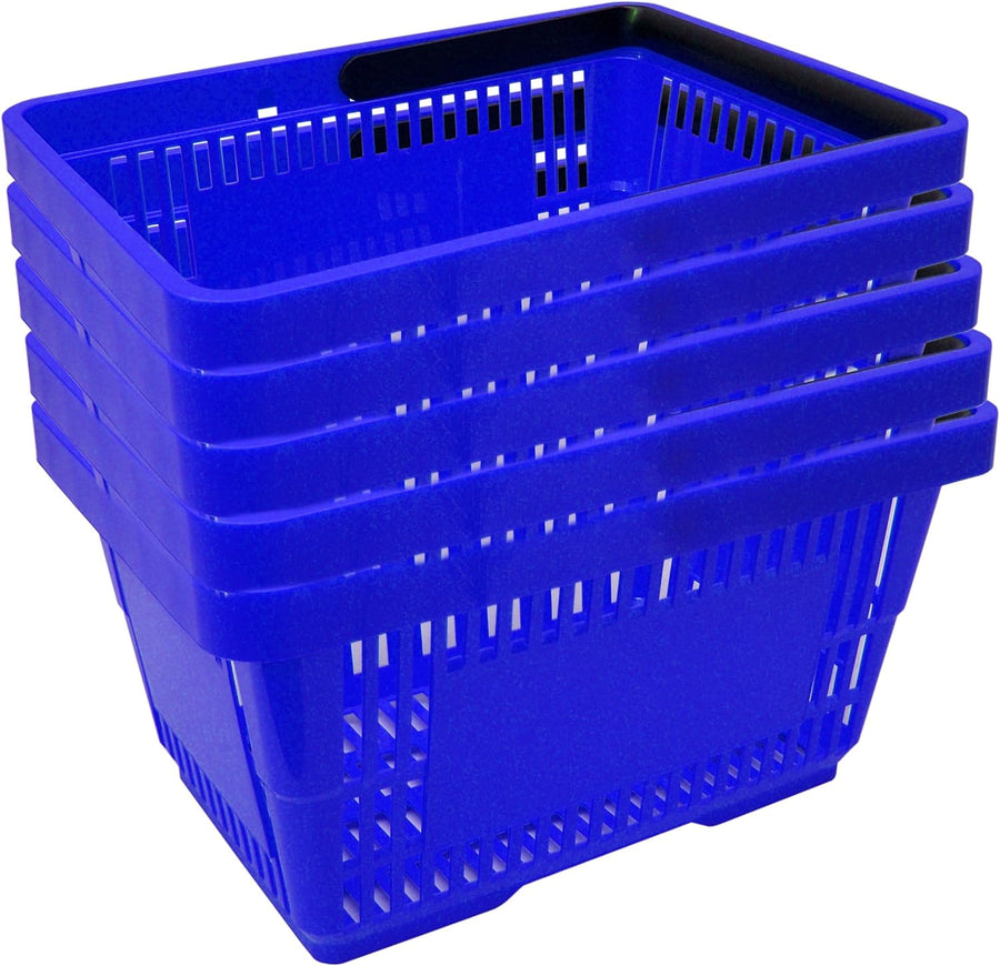 GERSO 5 Einkaufskörbe aus Kunststoff Plastik mit Henkel 20 Liter 40cm stapelbar Blau 5 Stück Blau, 5