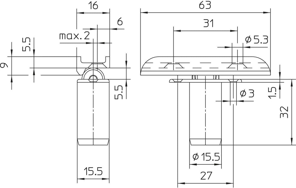 Drehlager aufliegend, für T-Stop Gleitschiene, silber ; 1 Stück