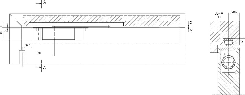 Gleitschiene TS 5000 Ecline mit integrierter Öffnungsunterstützung, Silber
