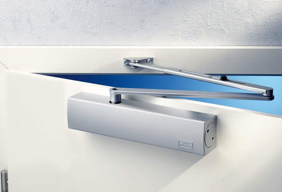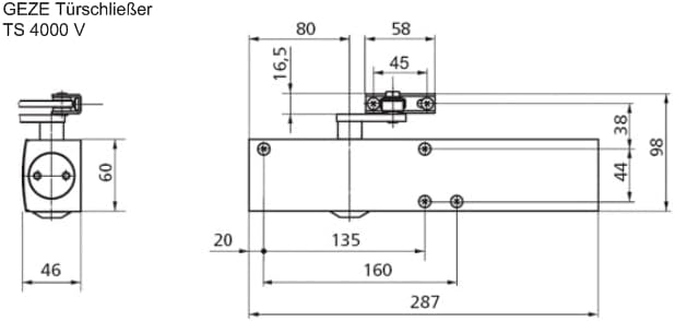 Geze Türschliesser TS4000V mit Feststellgestänge und Montageplatte Silber Ts 4000v Silber mit Festst