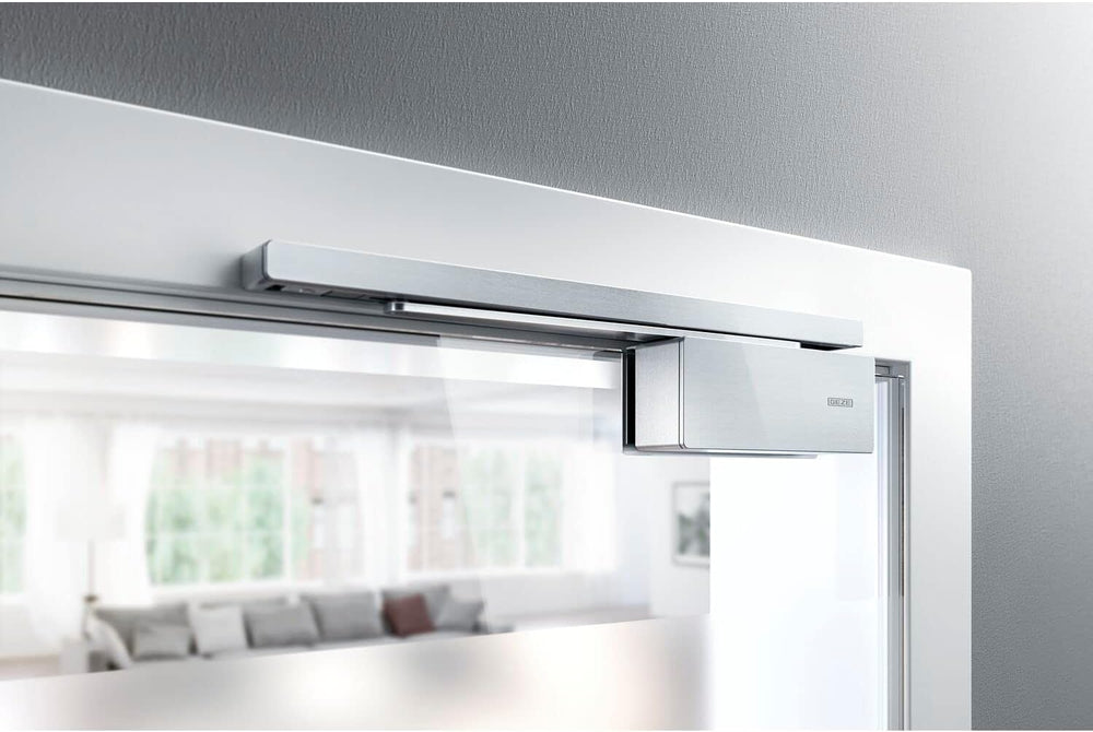 GEZE ActiveStop aufliegend für Zimmertür aus Glas, Türdämpfung, Türoffenhaltung, Fingerschutz, Türpu