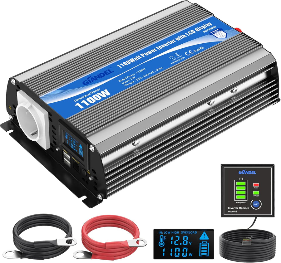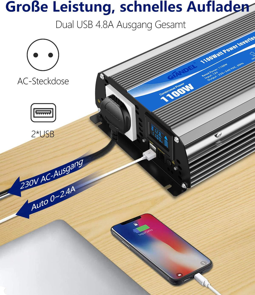 GIANDEL 1100W Modifizierter Sinus Wechselrichter 12V auf 230V Spannungswandler Kompatibel mit LiFePO
