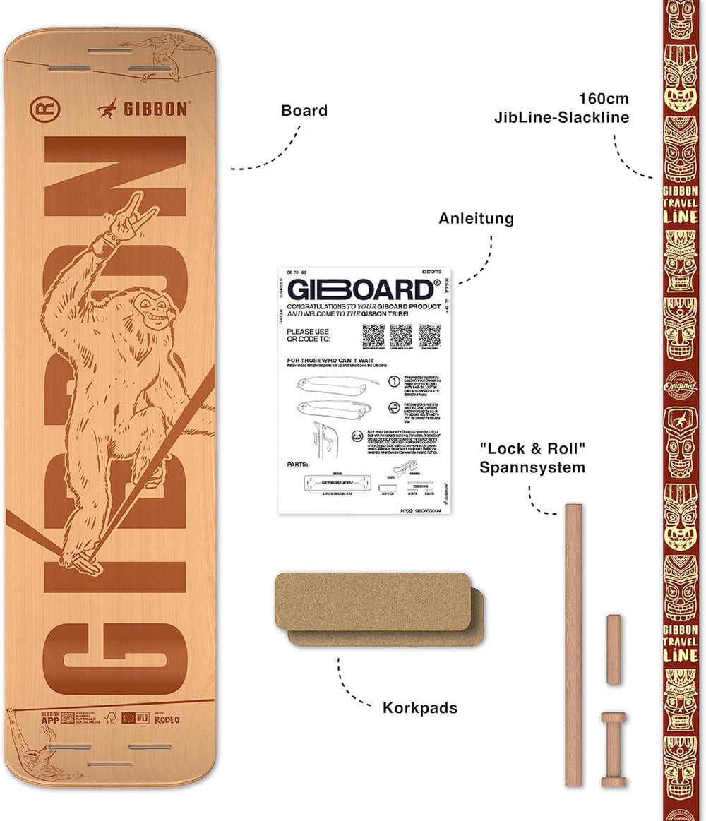 GIBOARD-SET BONZO CLASSIC - Innovatives Balance Board | Freestyle-Workout | hochwertiges Buchenholz