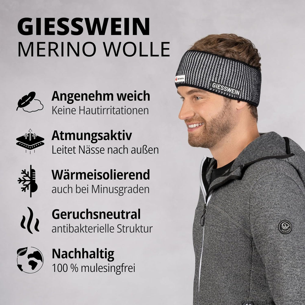 Giesswein - Brentenjoch Unisex Stirnband aus doppellagigem Merinojersey für Damen & Herren, Atmungsa