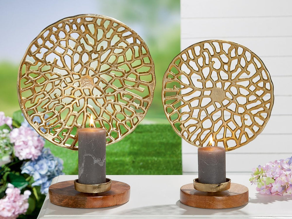 GILDE Deko Kerzenhalter Leuchter aus Aluminium und Holz - für Stumpenkerzen Kerzen mit Ø 6,5 cm - Fa