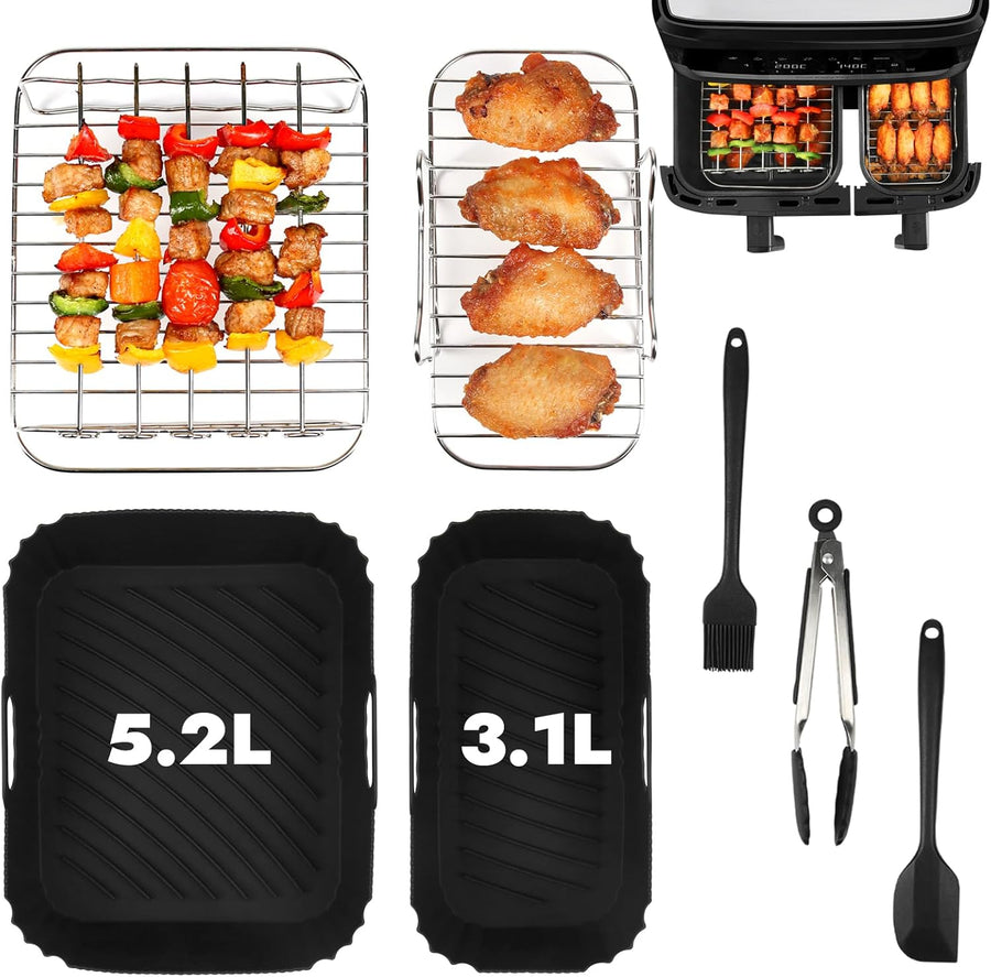 GINOYA 7 Stück Zubehör Heissluftfritteuse für Tefal EY9018 Dual Easy Fry 5,2/3,1 L, Silikonform Luft
