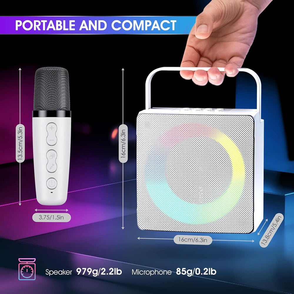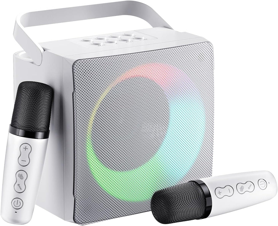 GJCrafts Karaoke Machine mit LED-Licht, Bluetooth Karaoke Lautsprecher mit 2 Drahtlosen Mikrofonen,