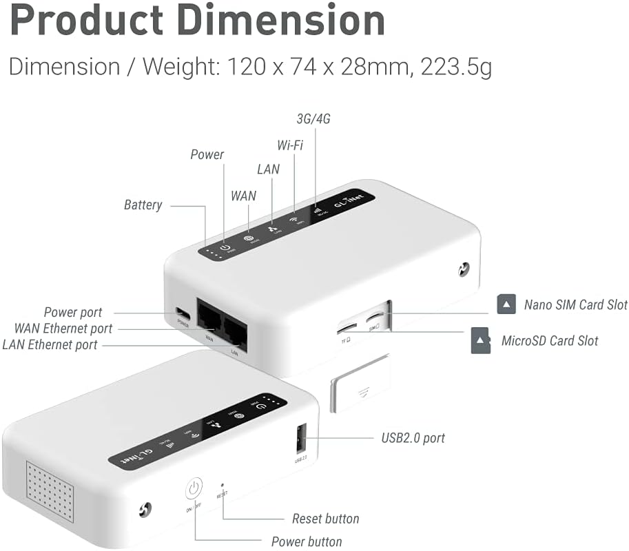 GL.iNet GL-MT300N-V2 WLAN Router Mobile Smart Mini Pocket VPN Reiserouter 3G/4G bis zu 300Mbit/s (2,