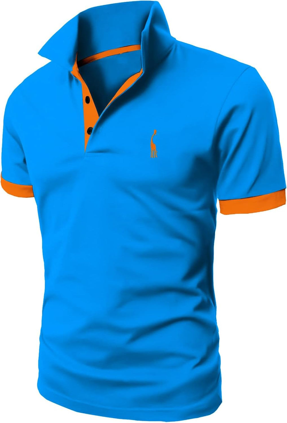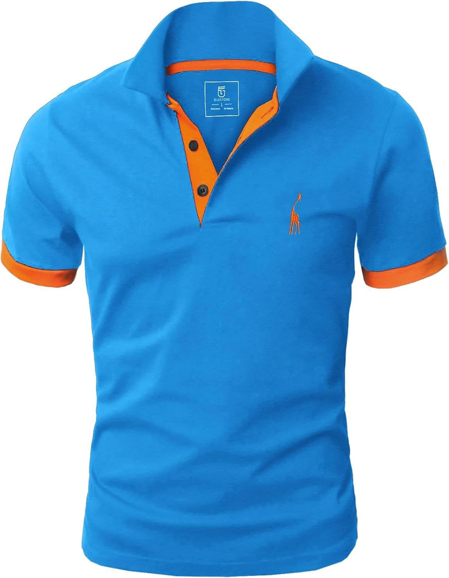 GLESTORE Poloshirt Herren Männer Hemd Herren Kurzarm Shirt Sommer M Blau&orange, M Blau&orange