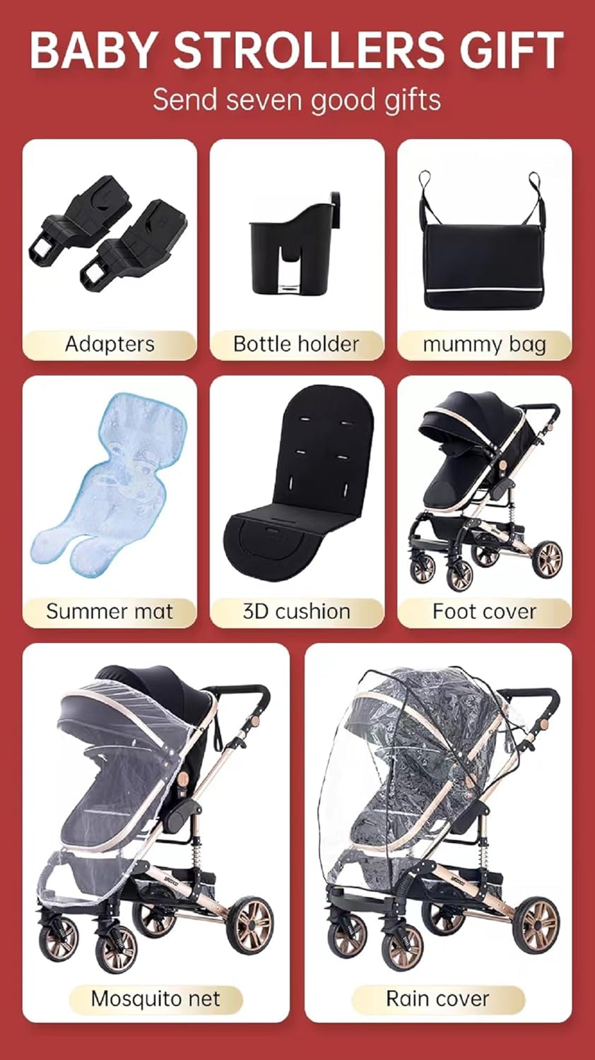 GLOKID Kinderwagen 3 in 1,Reisesysteme, Buggy mit Umkehrbarem Zwei-Wege-Schub,Babywanne Buggy&Sports