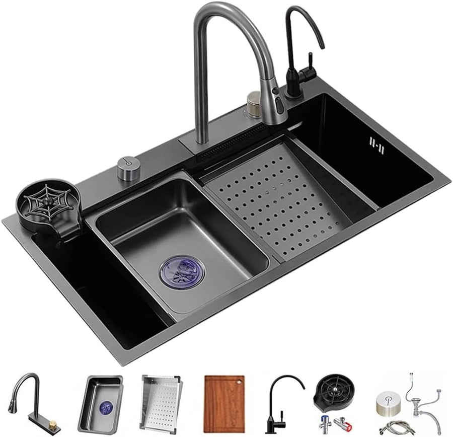 Schwarze Nano-Küchenspüle Edelstahl Wasserfallspüle Set Nanobeschichtete Arbeitsplatzspüle mit herau