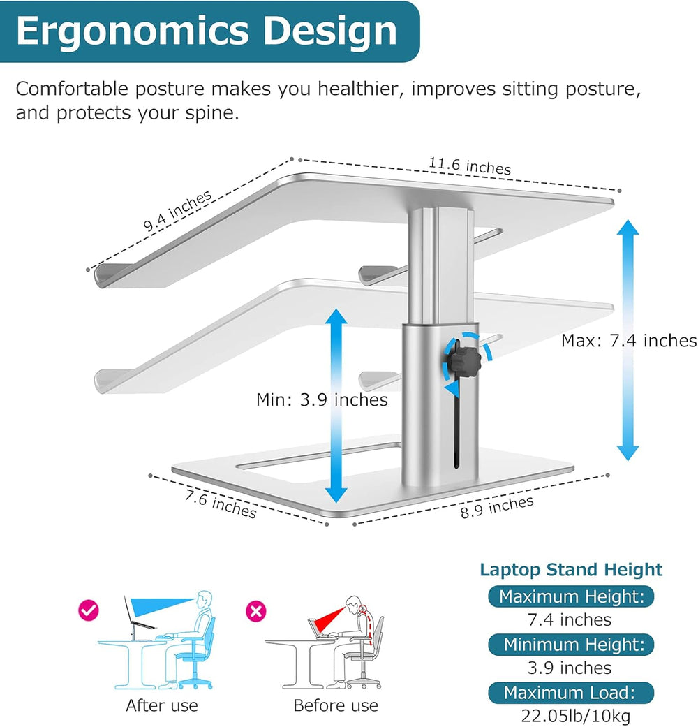 GOKEDA Laptop ständer, ergonomisch Verstellbarer Computerständer, Höhenhalter aus Aluminiumlegierung