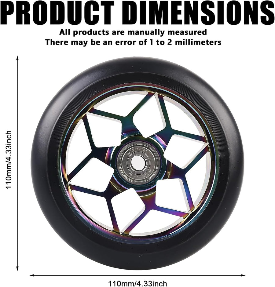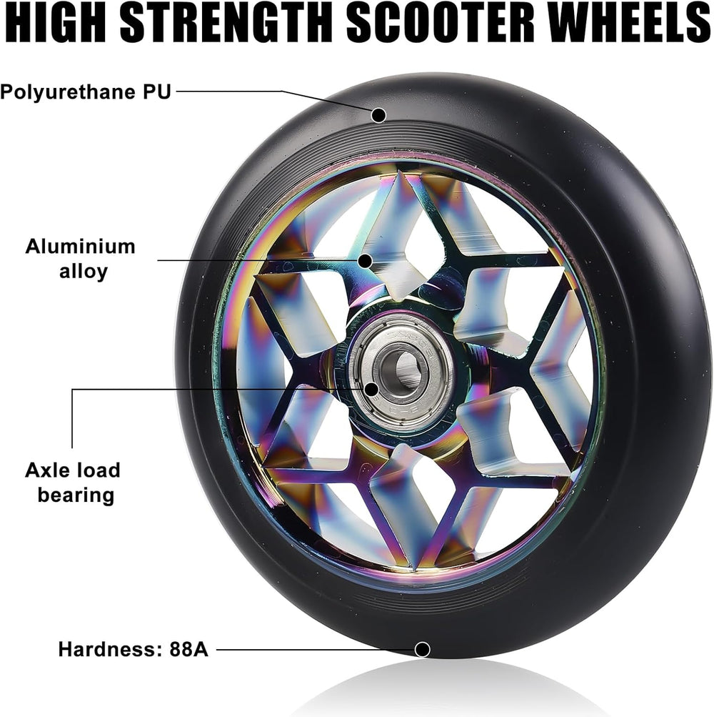 2 Stück Stunt Scooter Rollen 110 mm, Bunt Scooter Scooter Ersatzräder, 88A Rollerräder für Stunt mit