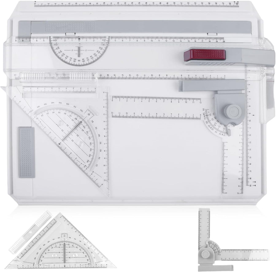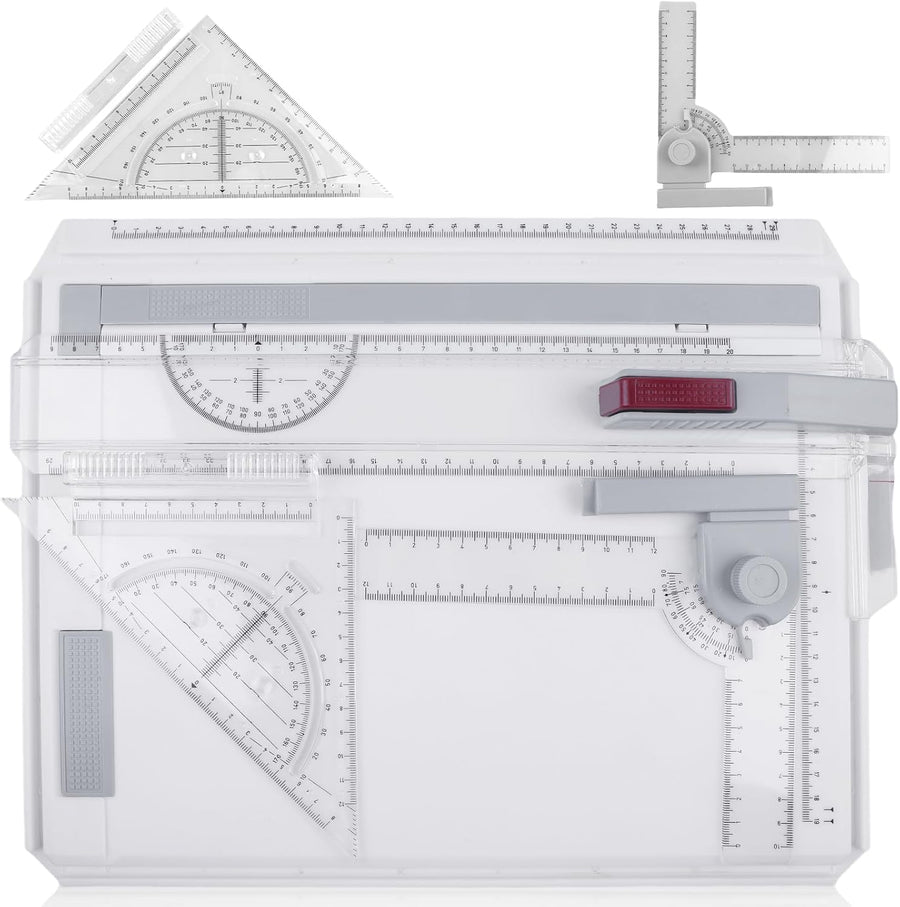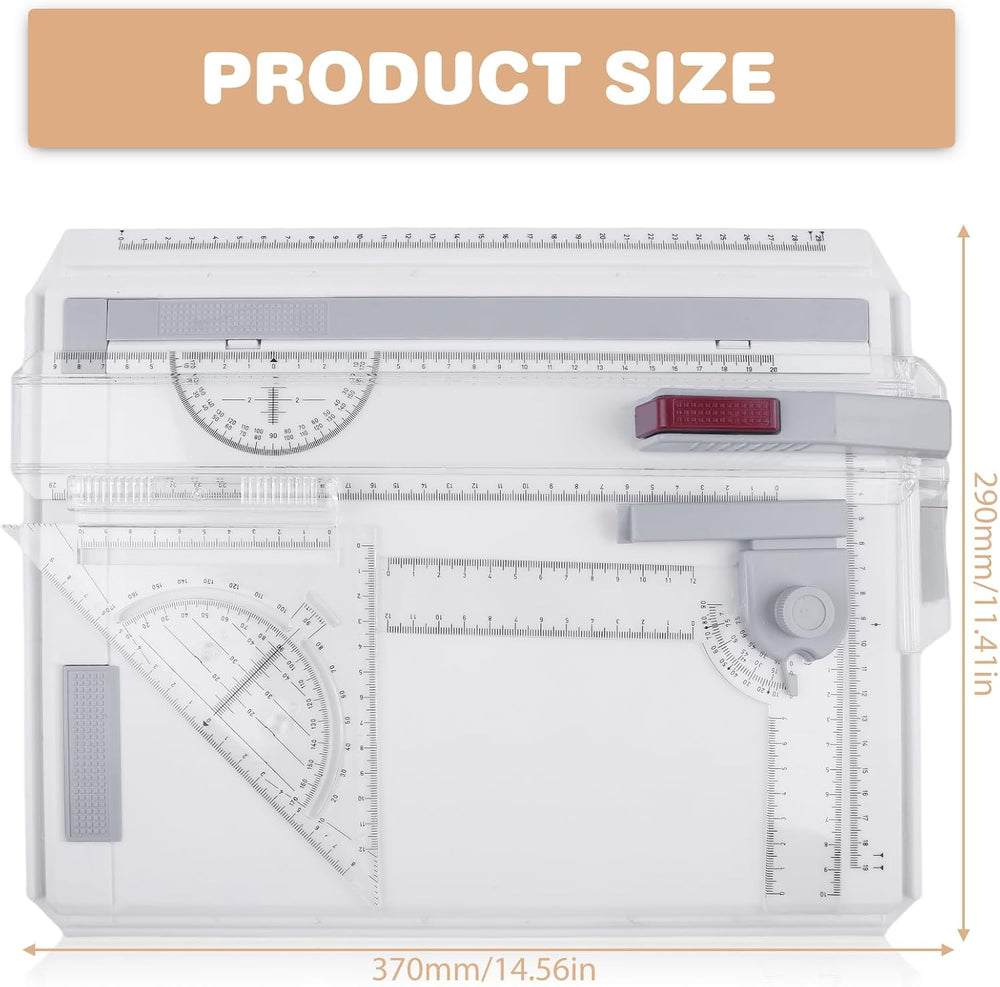 Zeichenbrett A4, DIN Zeichentisch mit Schiebelineal, Multifunktionaler Zeichenplatte Paralleler Bewe