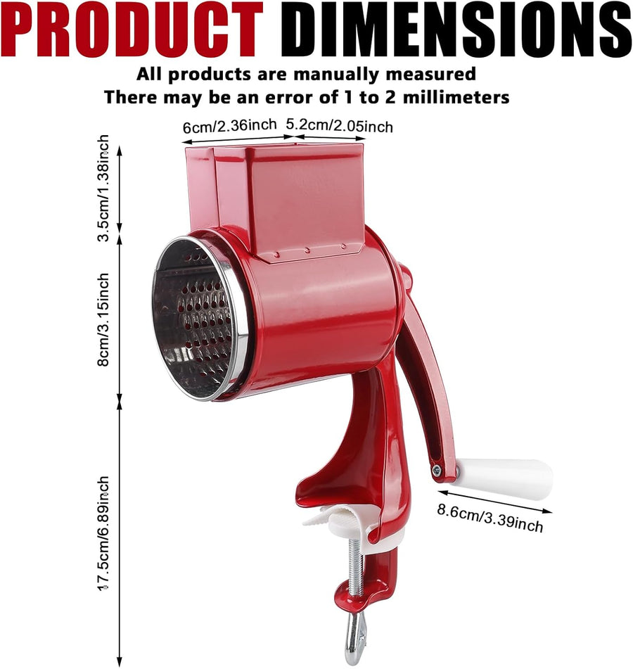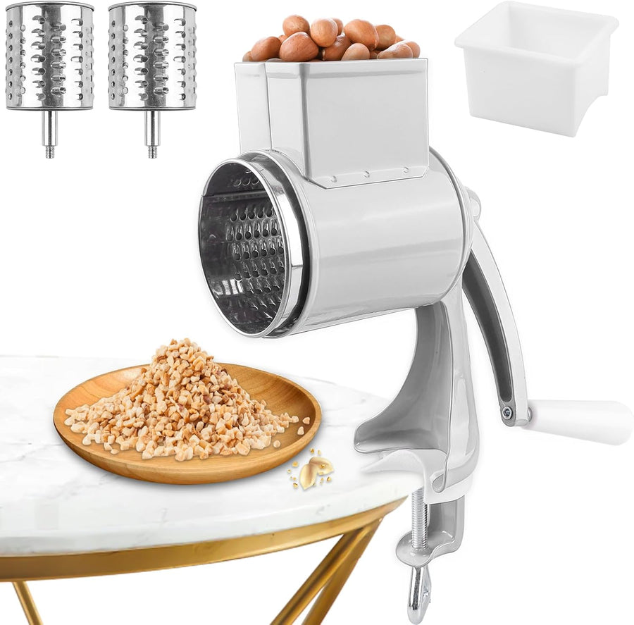 Manuelle Nussmühle mit 2 abnehmbaren Trommelblättern, Edelstahl Schnelles Schneiden Gemüsehobel, Man