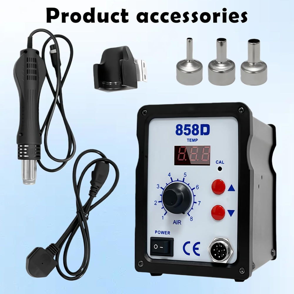 700W Heissluft Lötstation, 858D Hot Air Rework Station mit LED Display und 3 Düsen, 2-in-1 Entlötsta