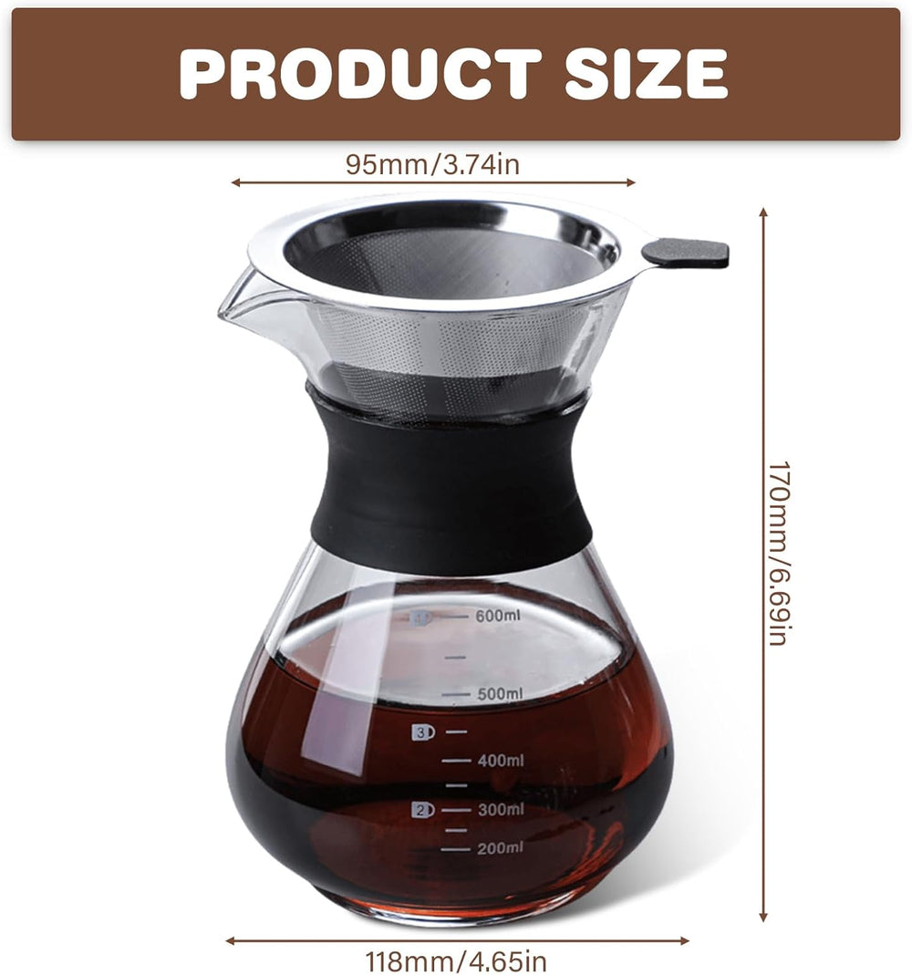 Pour Over Kaffeebereiter, 600 ml Borosilikat Glaskanne mit doppelschichtigem Edelstahlfilter, Perman