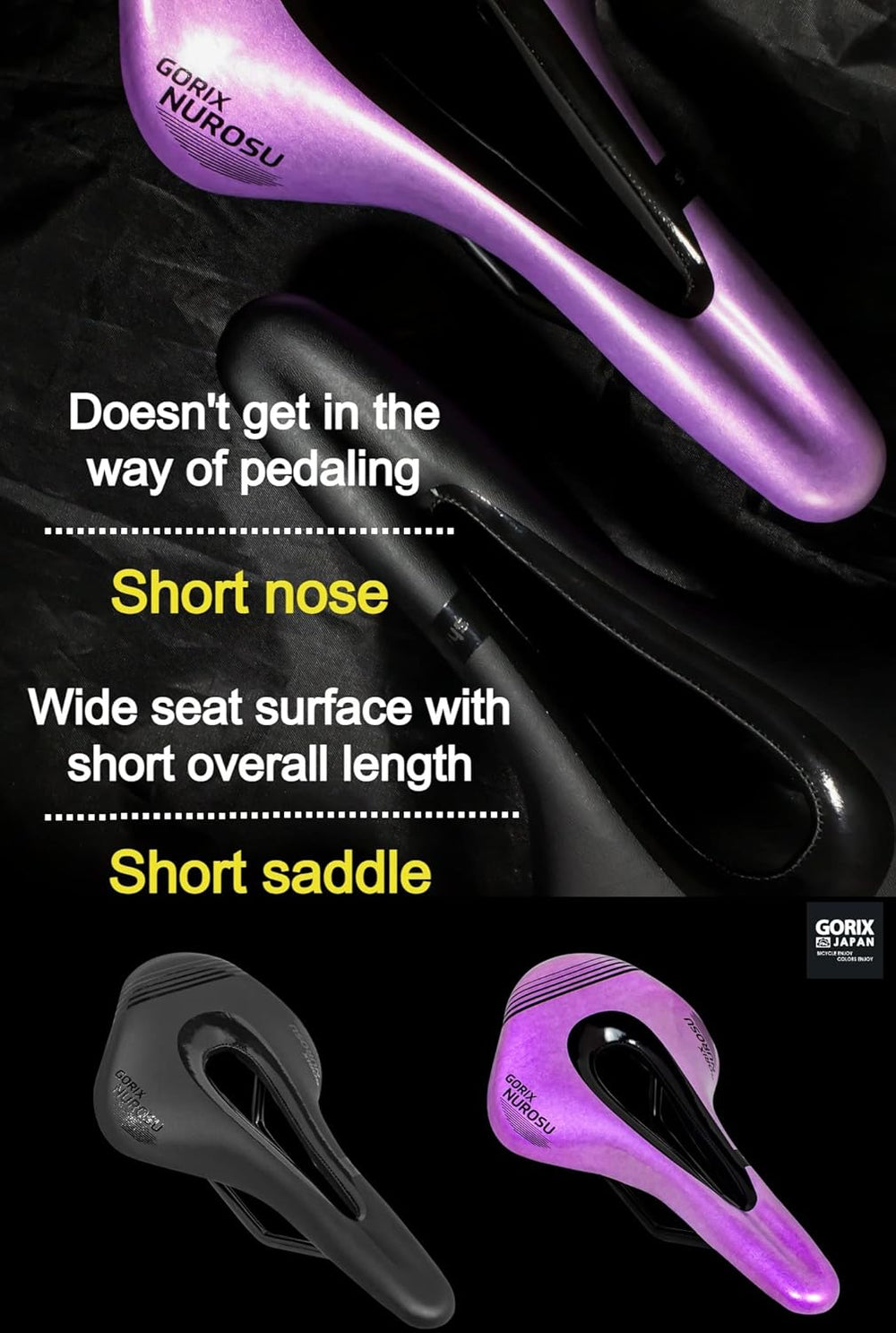 GORIX GX-NUROSU, kurzer Sattelsitz, kurze Nase, leicht, MTB Schwarz, Schwarz