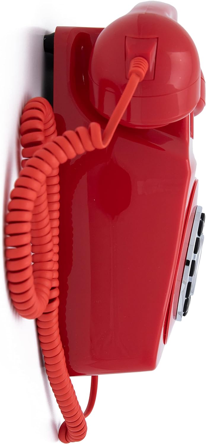 GPO 746WALL Retro Festznetztelefon mit Drucktasten zur Wandmontage mit authentischer Klingelton, Rot