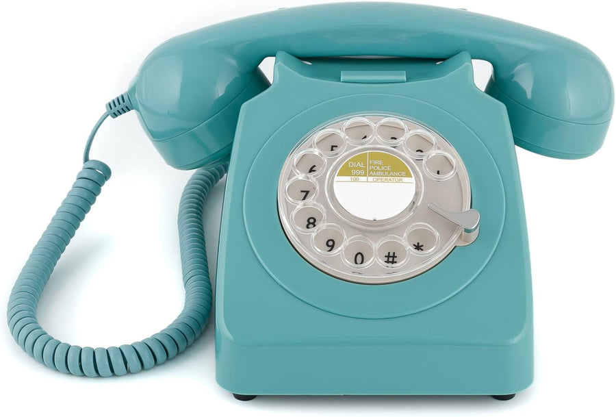 GPO 746ROTARYBLU Retro Telefon mit Wählscheibe im 70er Jahre Design Blau, Blau