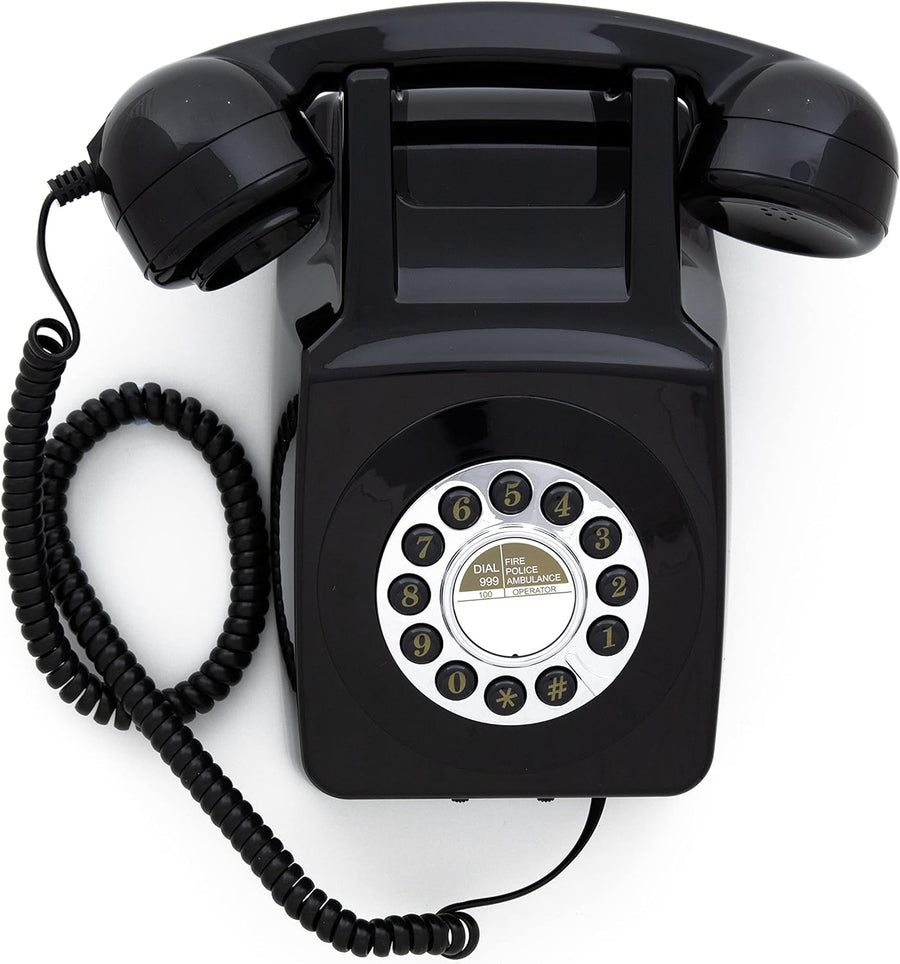 GPO 746WALL Retro Festznetztelefon mit Drucktasten zur Wandmontage mit authentischer Klingelton, Sch