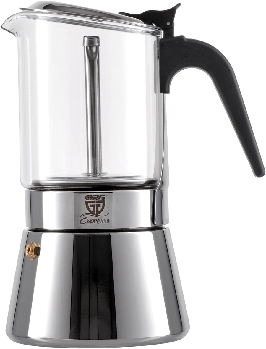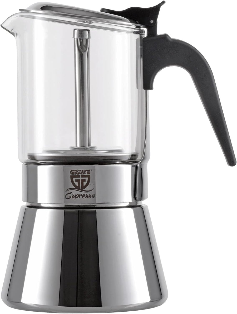 GRÄWE Espressokocher mit Glaskanne, für Induktion und alle Herdarten geeignet, spülmaschinengeeignet