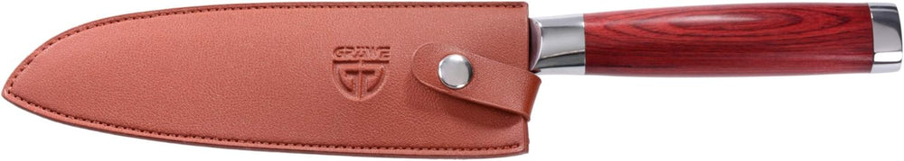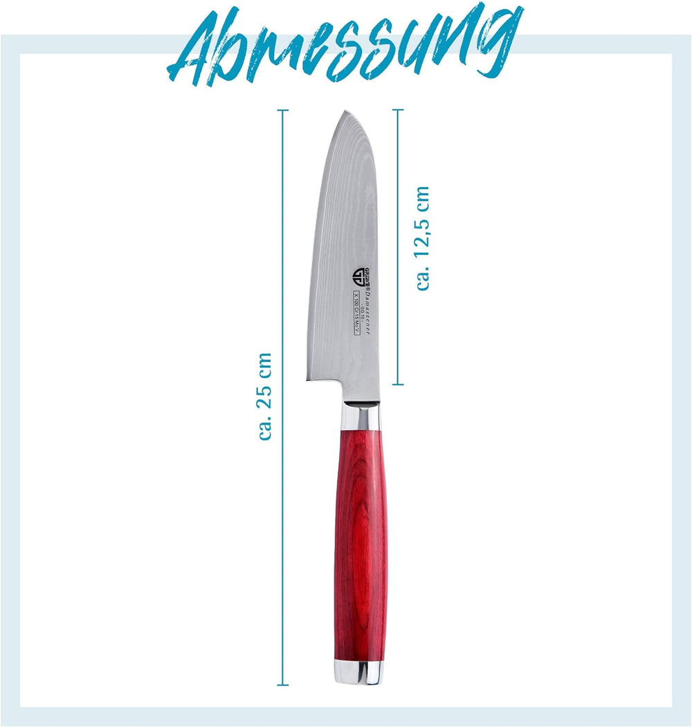 GRÄWE Damastmesser aus Damaststahl, gross, 12,5 cm Klinge, scharf, Damaszener Santokumesser mit Holz