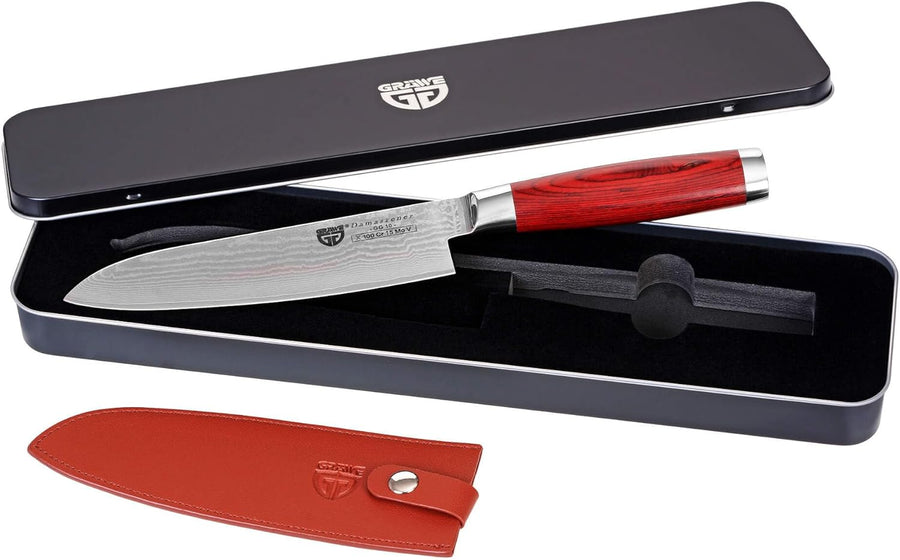 GRÄWE Damaszener Santokumesser 12 cm - Damast-Küchenmesser mit 65-lagiger Klinge und Micarta-Griff,