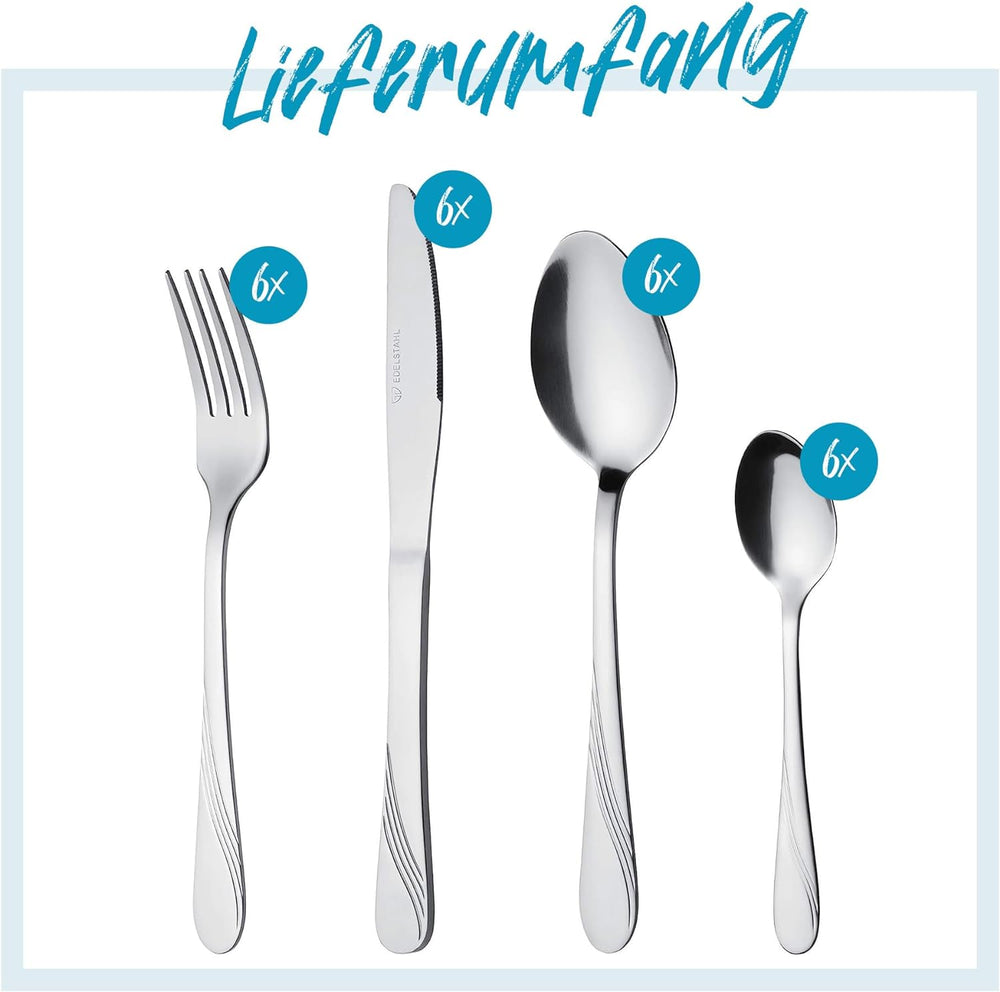 GRÄWE Besteckset für 6 Personen aus Edelstahl, Tafelbesteck Set 24-teilig, nickelfrei, rostfrei, han
